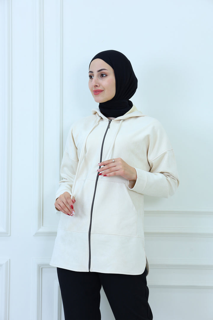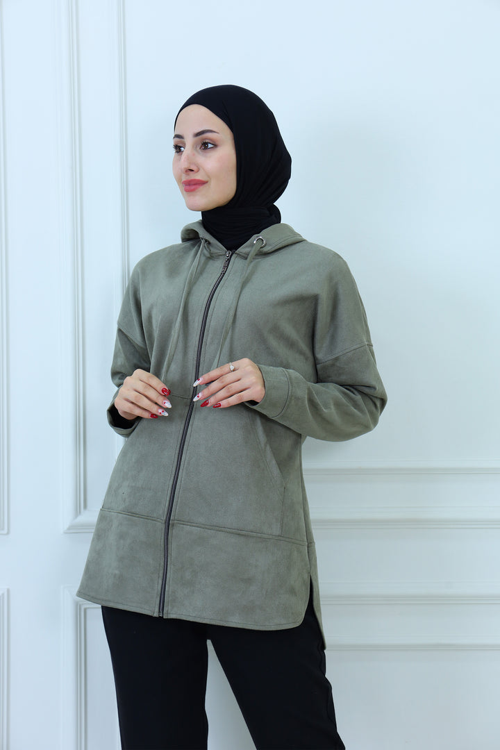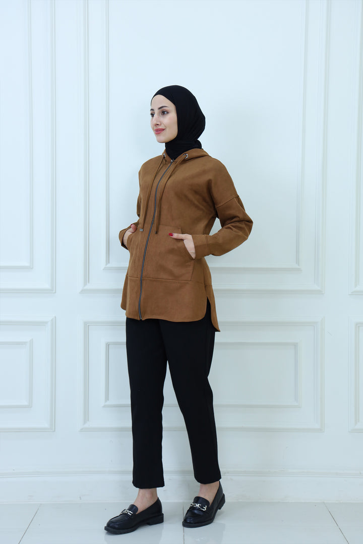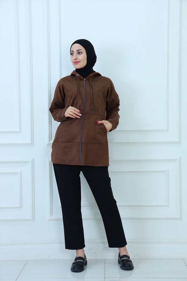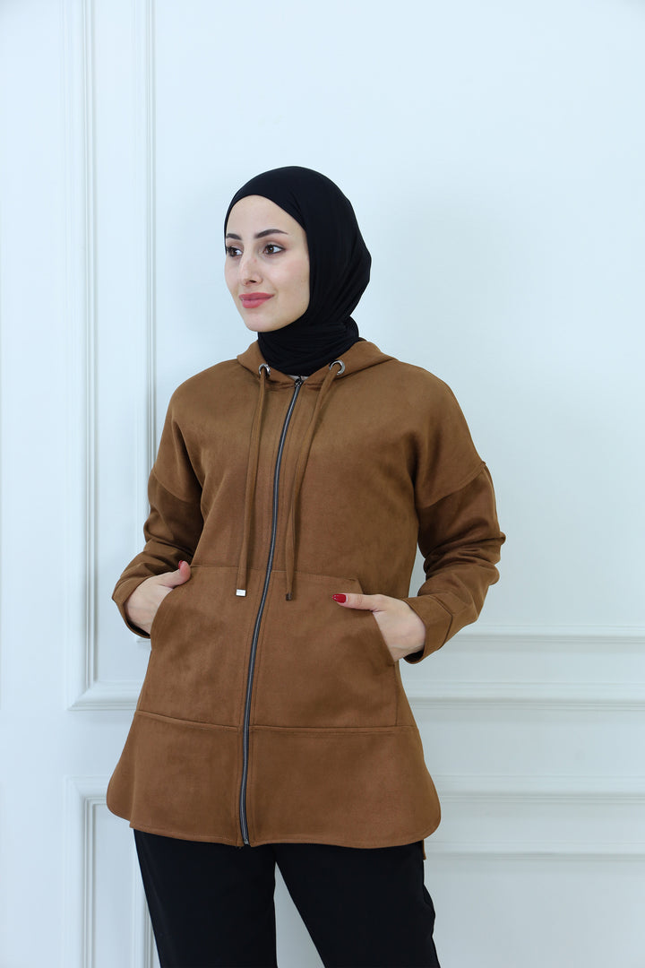 Embrace the changing season with this essential zip-up hooded jacket, the perfect outer layer for your autumn wardrobe. The jacket provides a comfortable, relaxed fit and features a cozy hood and a convenient front zipper.