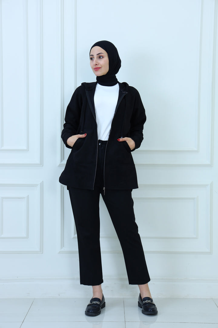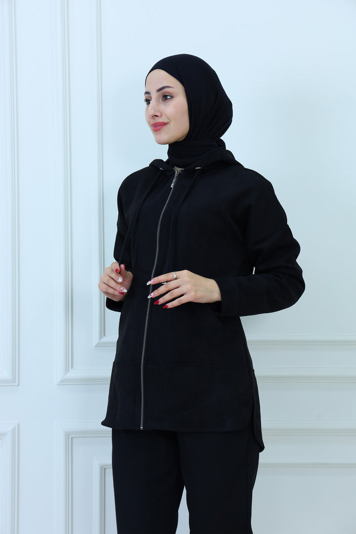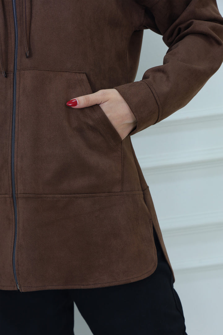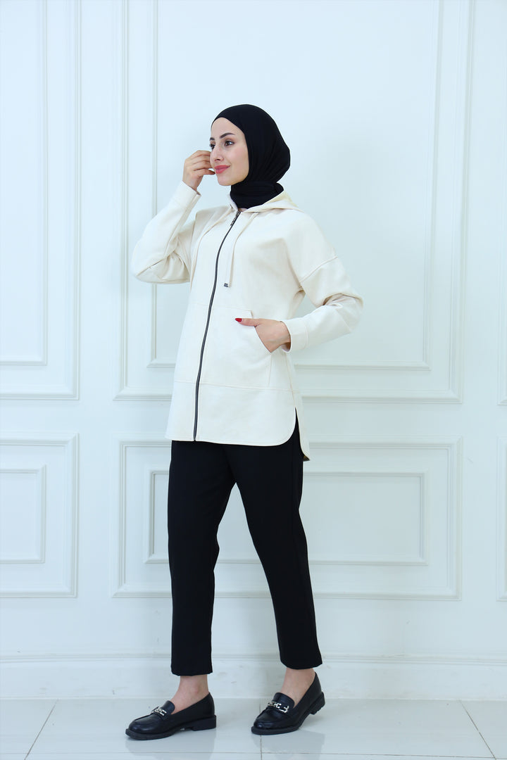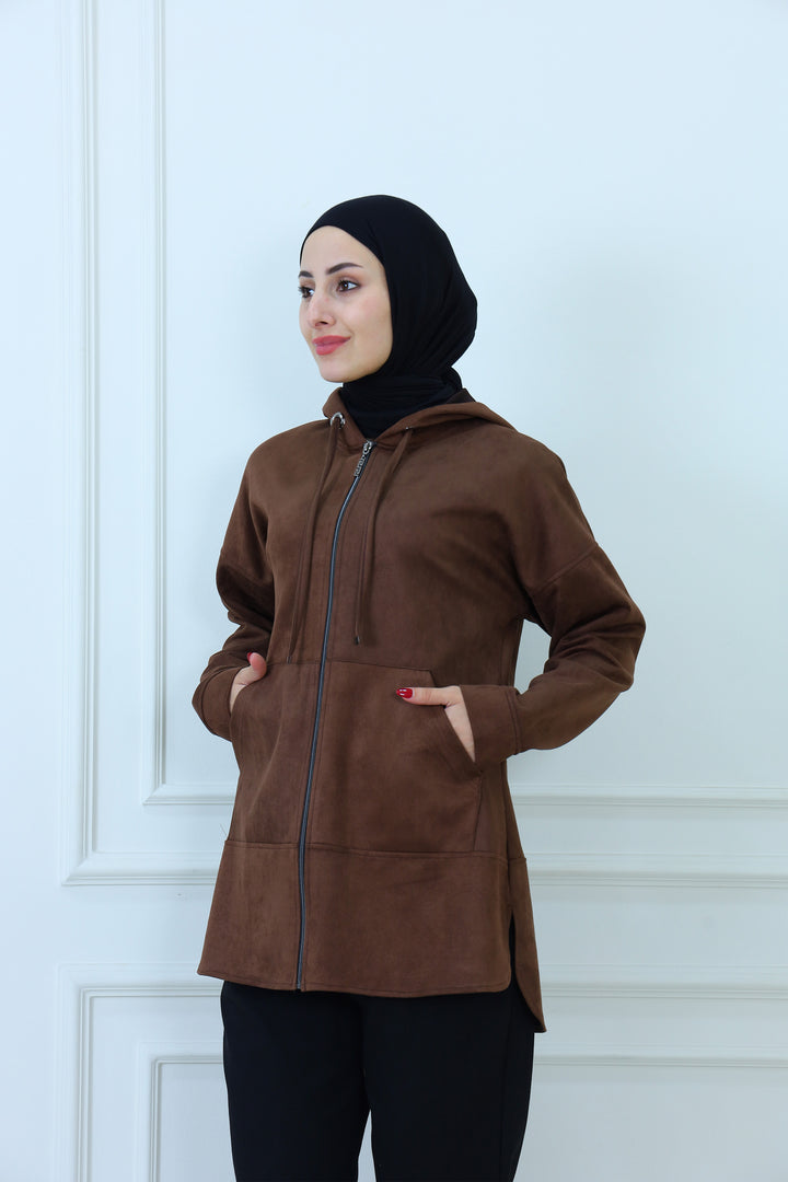 Embrace the changing season with this essential zip-up hooded jacket, the perfect outer layer for your autumn wardrobe. The jacket provides a comfortable, relaxed fit and features a cozy hood and a convenient front zipper.
