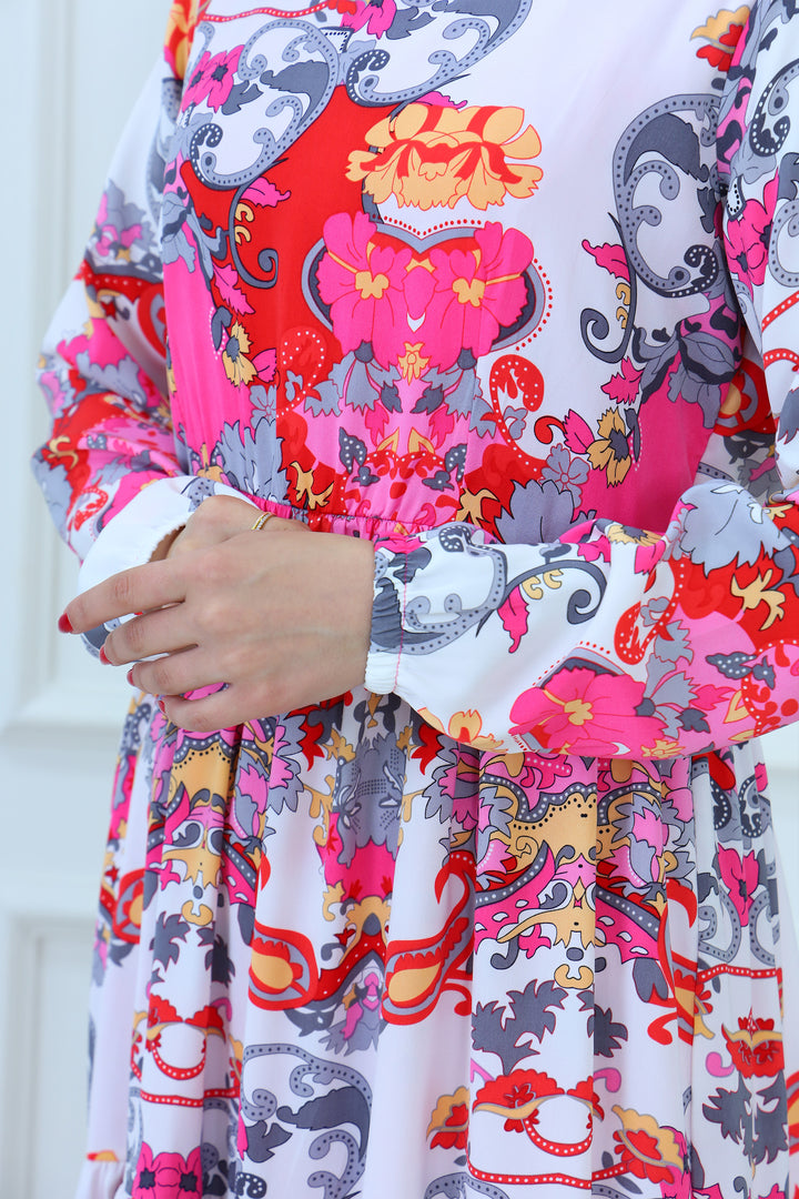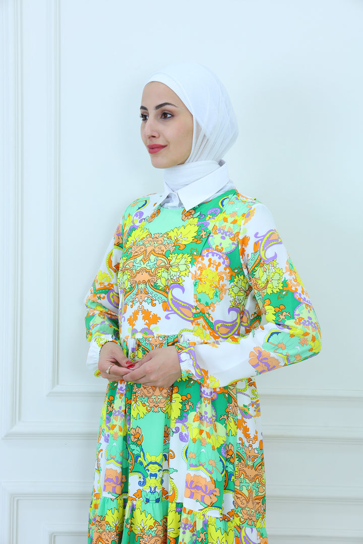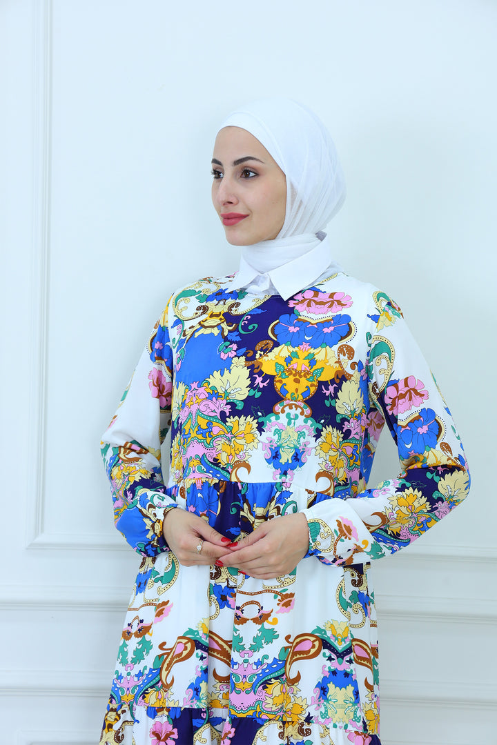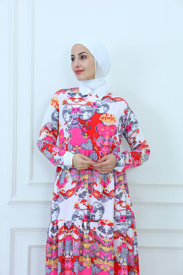 Details: Chic patterned maxi dress featuring flowy tiered design. Made from lightweight fabric for comfort and elegance, this modest dress is perfect for casual wear, gatherings, or special occasions. A fashionable choice for women seeking modern and modest patterned dresses with a stylish silhouette.