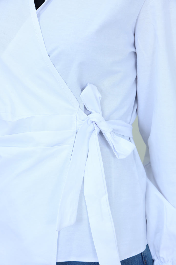 Pleated Side-Tie Blouse with Puff Sleeves