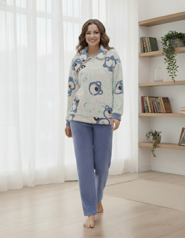 Introducing the ultimate in cozy comfort: The Plush Teddy Bear Fleece Full-Zip Pajama.