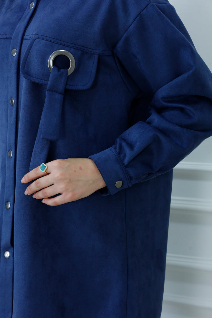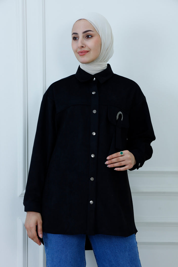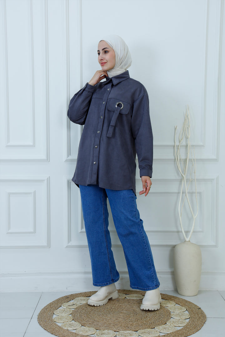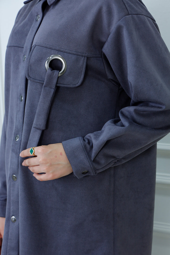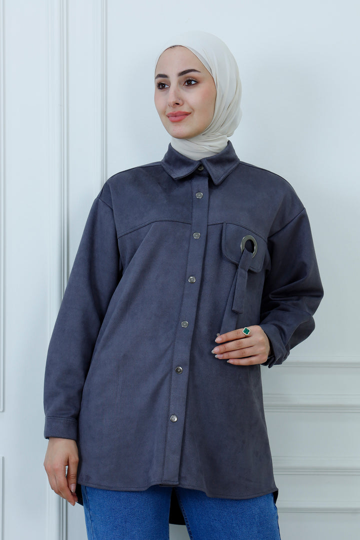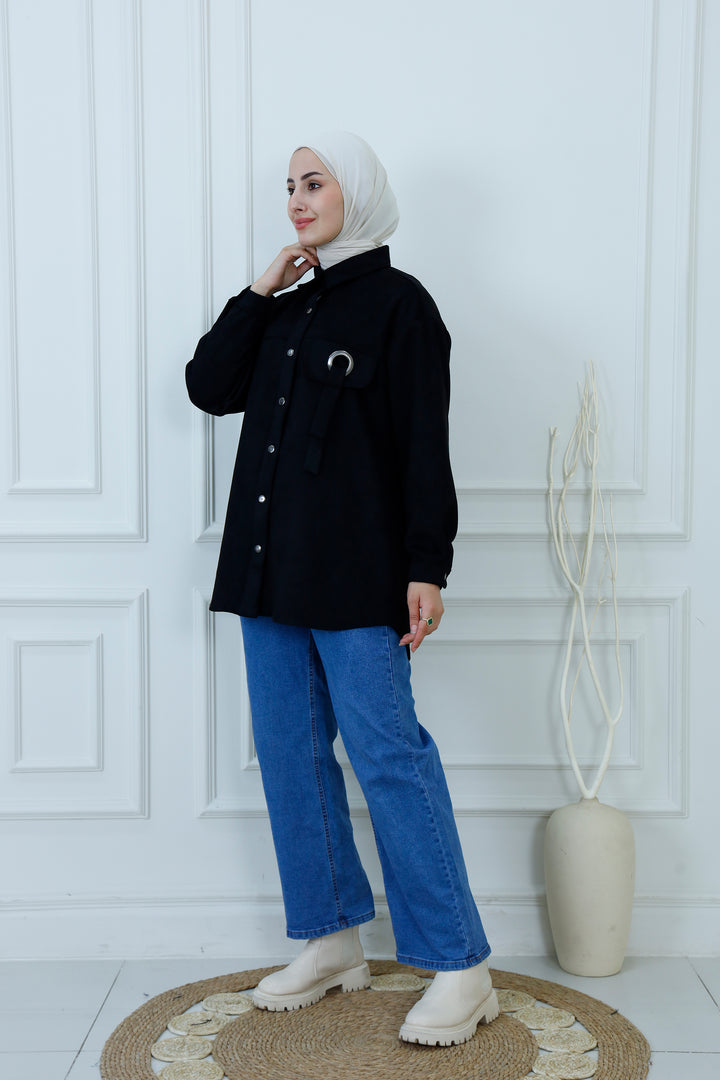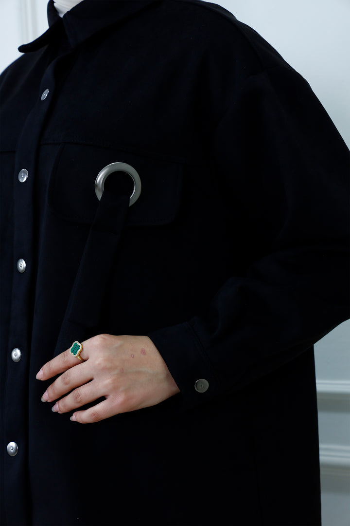 Snap-Button Longline Shirt with Ring Detail | Modest Utility Overshirt