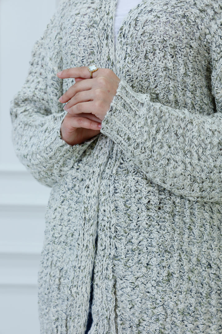Wrap yourself in warmth with our Chunky Marled Knit Long Cardigan. This open-front sweater features a gorgeous textured knit pattern from a marled yarn, giving it a soft, speckled look. Its longline silhouette and modest fit make it the perfect layering piece over tunics, tops, or dresses. A cozy and chic addition to your fall and winter wardrobe.