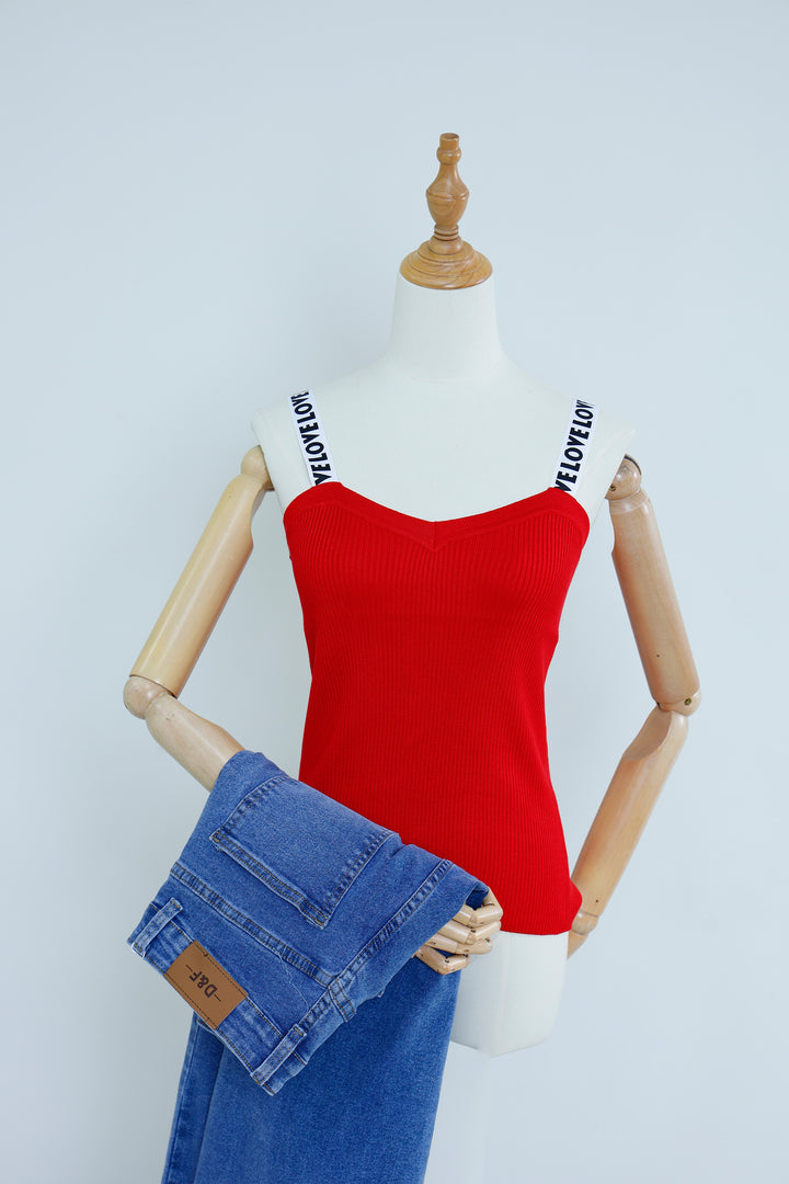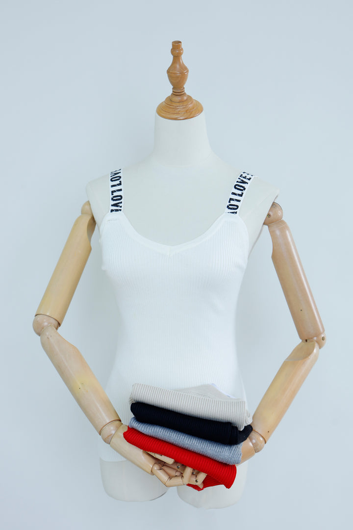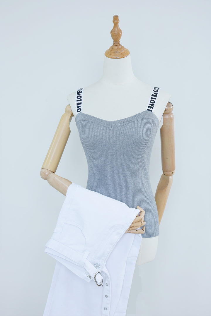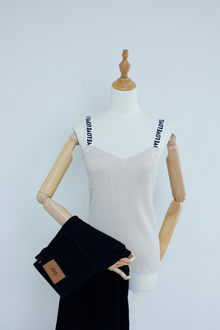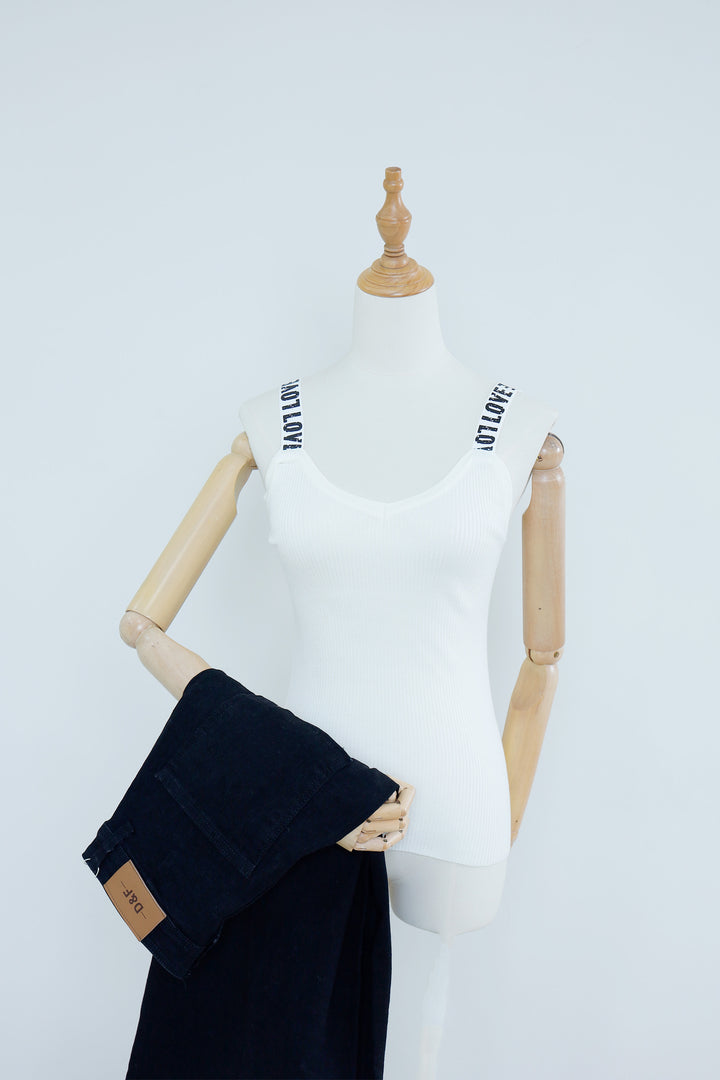 Modern Layering: Ribbed Knit Tank Top with Logo Straps