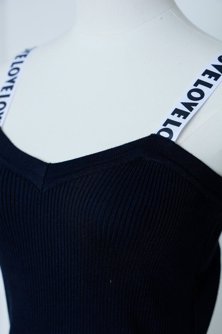 Crafted from a soft, stretch ribbed knit, this top offers a flattering, fitted silhouette and all-day comfort. The classic sweetheart/V-neckline is complemented by the statement feature: wide, contrasting logo-print shoulder straps that add a trendy, sporty edge to the design.
