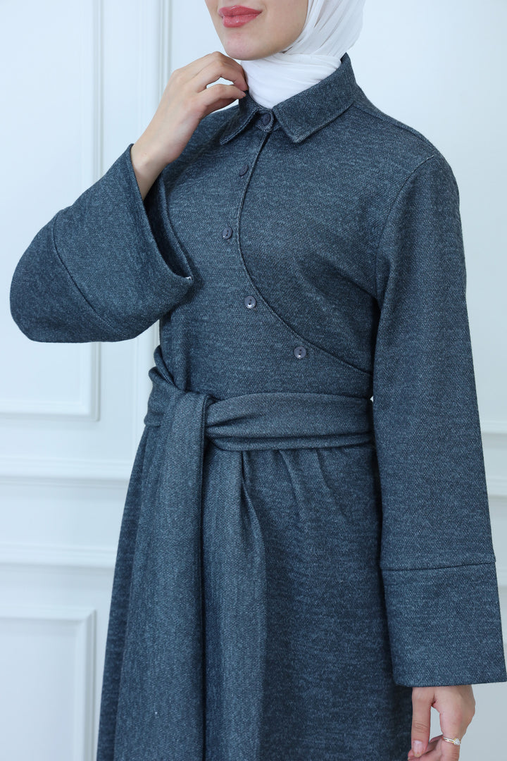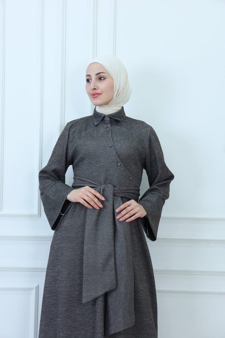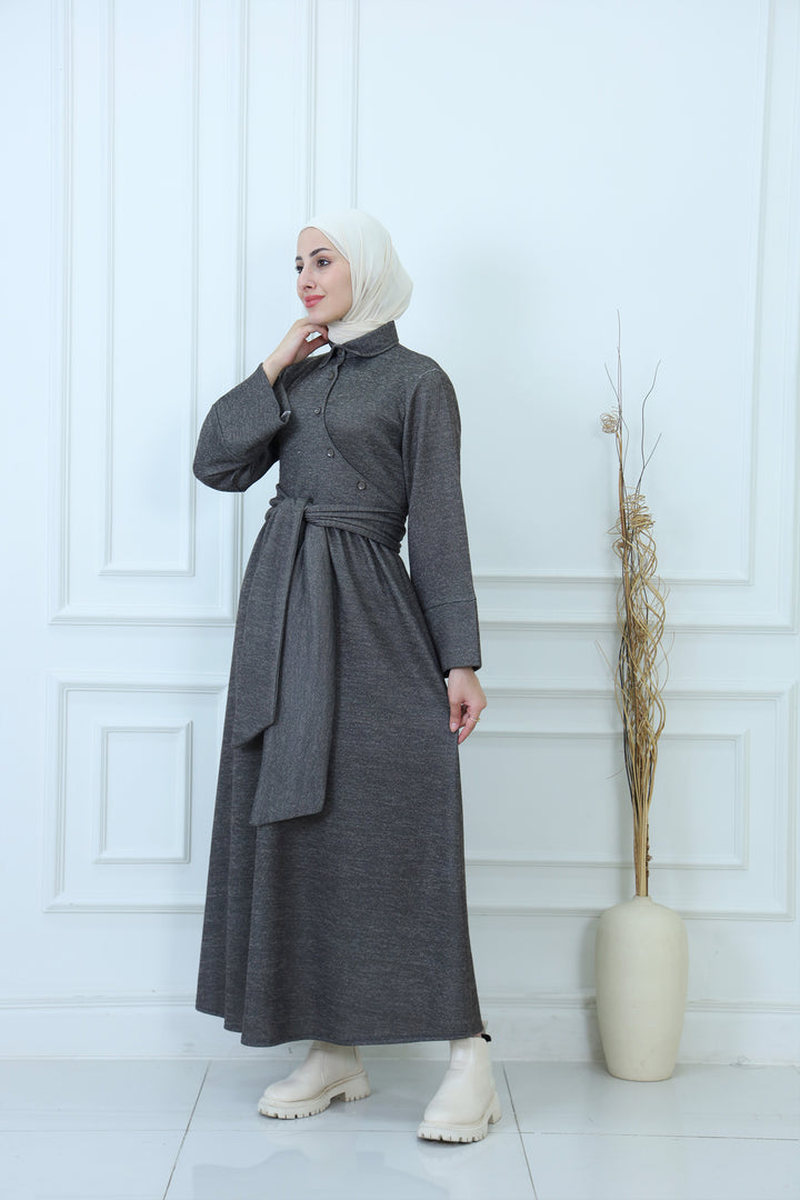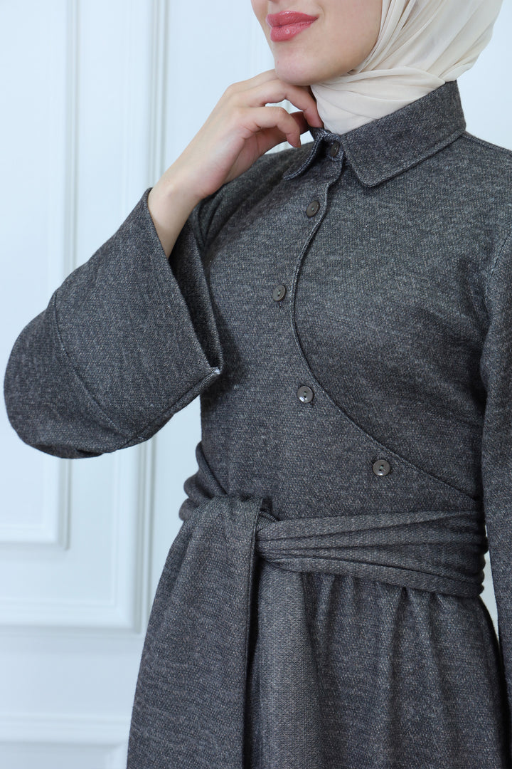 Achieve effortless style and comfort with this striking Two-Tone Modest Dress. Designed with a sophisticated color-block panel across the chest, this full-length piece merges modest coverage with a modern, sporty aesthetic. The sage and olive green tones are versatile and perfectly suited for the fall and winter seasons.