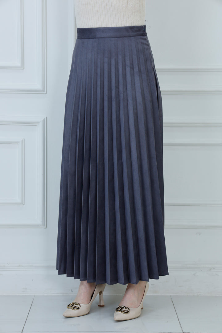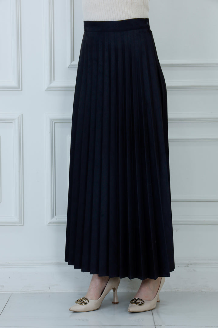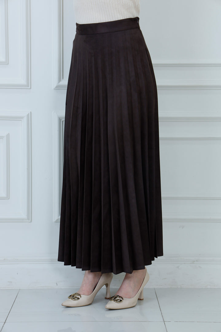Introduce luxurious texture to your wardrobe with the Luxe Pleat Maxi Skirt. Crafted from a premium soft-touch faux suede material, this skirt offers a rich, matte finish and beautiful movement. The sharp, knife-edge pleats are heat-set to hold their shape, flowing elegantly from the high-waist band down to a sophisticated maxi length. This piece is a versatile foundation, easily dressed up for evening wear or paired with knits for a chic daytime look.