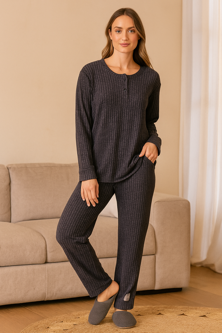Experience next-level softness with The Softest Knit Henley Set. Designed for superior comfort, this ensemble is made from a plush, stretchable wide-rib fabric that moves with you. The pullover top offers an effortless, slightly oversized fit, detailed with a small button-front closure at the neckline for a touch of classic charm. Wear the pieces together or mix them with other casual staples—this versatile set ensures maximum comfort and a clean, contemporary silhouette.