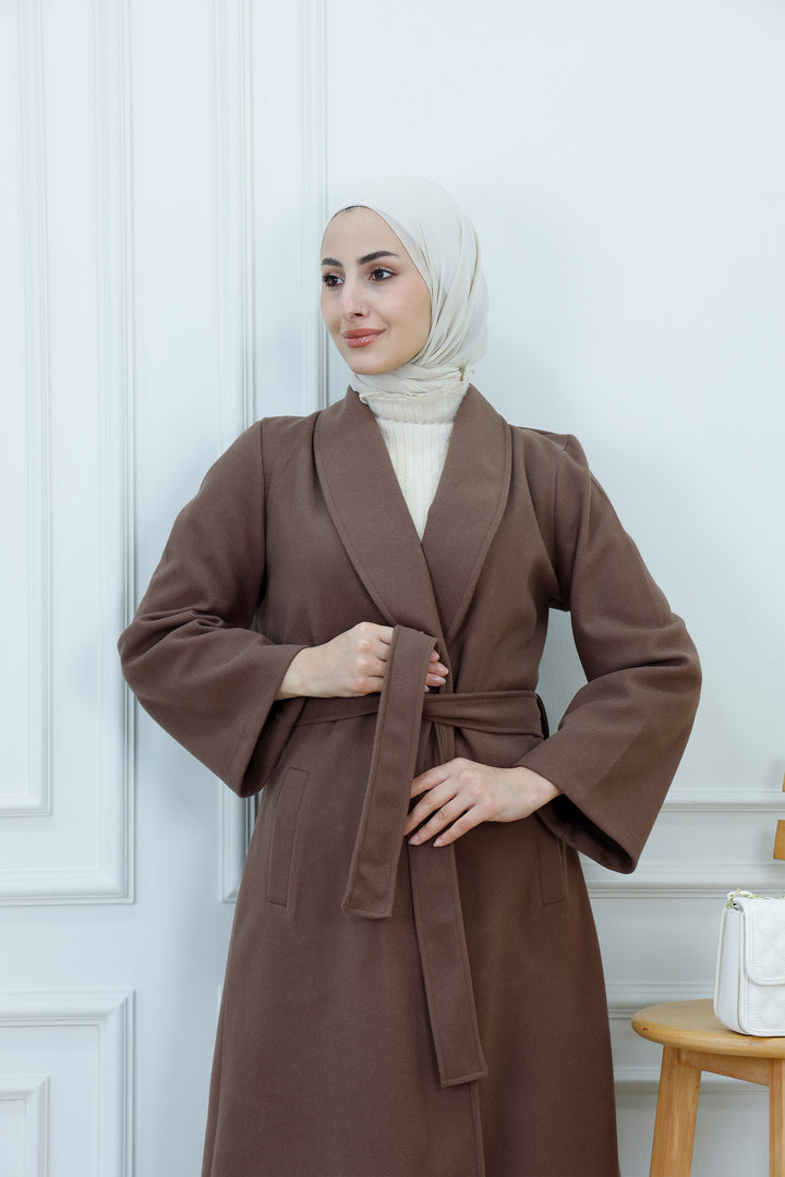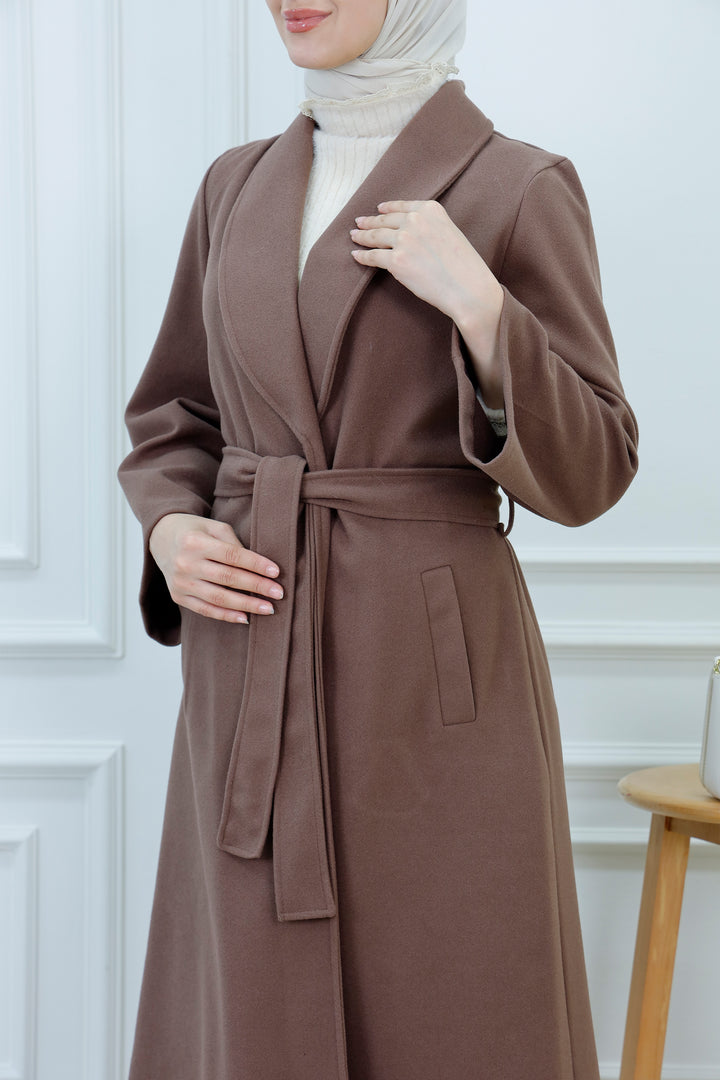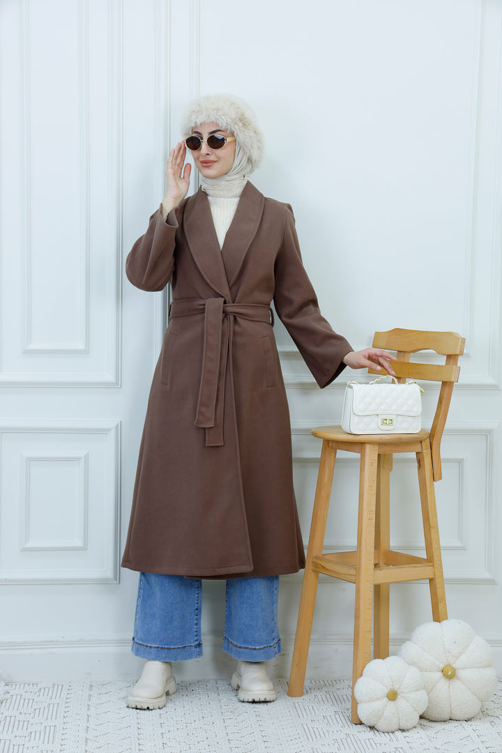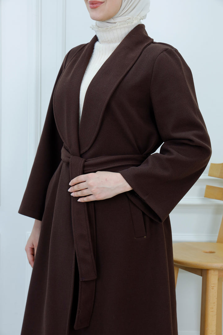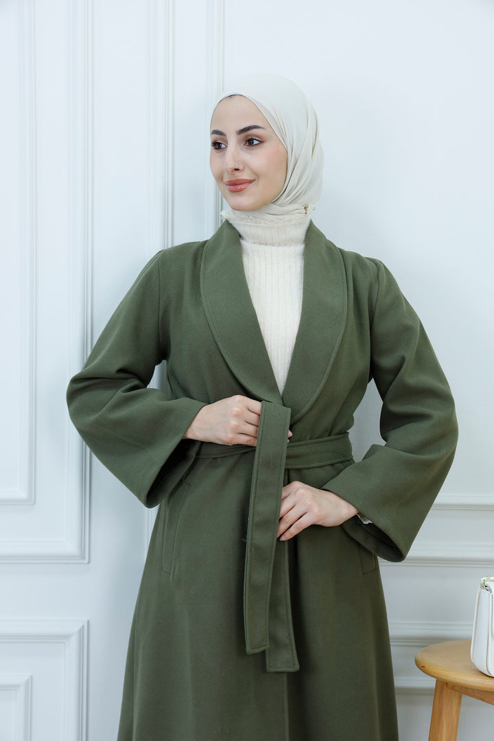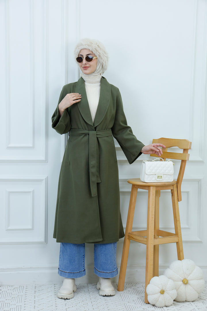 Stay warm and stylish with this women's belted long coat in olive green. Designed for comfort and elegance, this coat features a wide lapel collar, soft fabric, and a matching belt to define the waist. The relaxed fit makes it perfect for layering over sweaters or turtlenecks, while the side pockets add practicality for everyday wear. Ideal for fall and winter, this coat pairs effortlessly with jeans, boots, and neutral accessories.