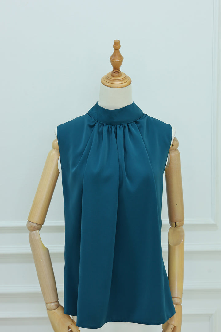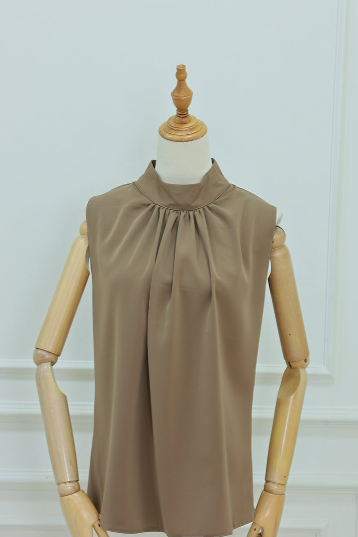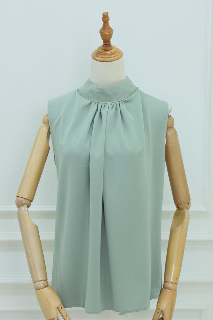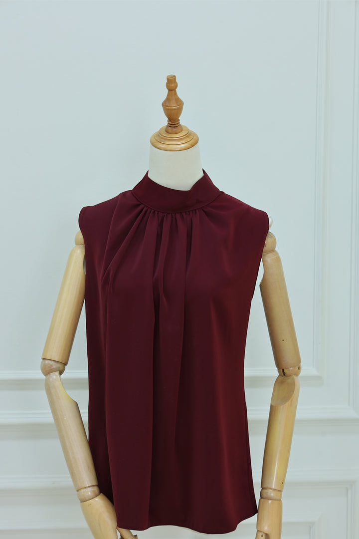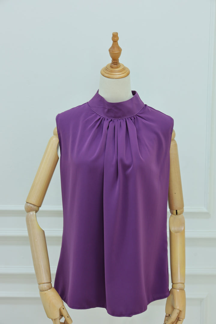 Women's High Neck Sleeveless Blouse with Back Zipper